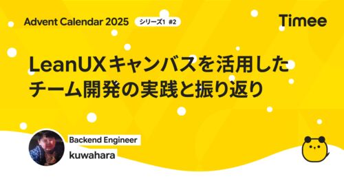 この記事はTimee Product Advent Calendar 2025の2日目の記事です。 タイミーでバックエンドエンジニアをしている桑原です。 突然ですが、LeanUXキャンバスというツールをご存知でしょうか? 今年、いくつかの開発をチームで進める中で、LeanUXキャンバスを…