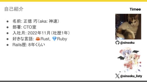 イベント概要 2023年11月15日に「GENBA #1 〜RubyとRails開発の現場〜」と題してRuby/Railsでの開発に関するトピックでタイミーとエンペイ社合同で勉強会を開催しました。 その中でタイミーバックエンドエンジニアの正徳さん a.k.a 神速さん(@sinsoku_listy…