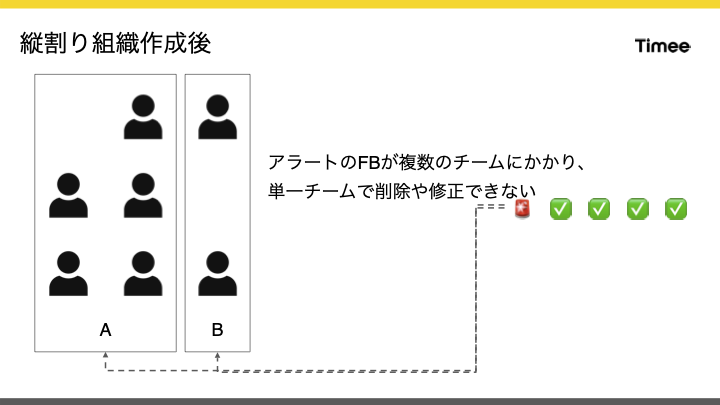 ただし、この組織変更の際に、アラートシステムの見直しは行われず、バックエンドエンジニアが引き続きアラートの責任を担うことになりました。