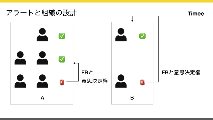 - アラートは組織構造とFBを受ける人が不一致の場合に機能しなくなっていく