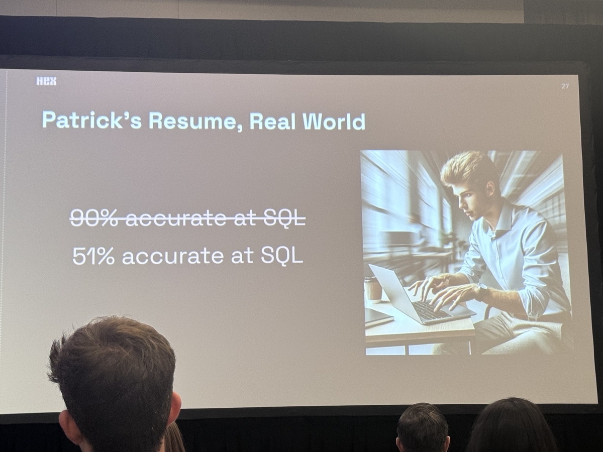 Hex社にはドッグフーディングの文化があるので、リリースした magic というLLMによるクエリサポート機能を自社でどこまで活用できるか常に使用してきたそうで、社内のmagic機能に「パトリック」という名前をつけているそうです!