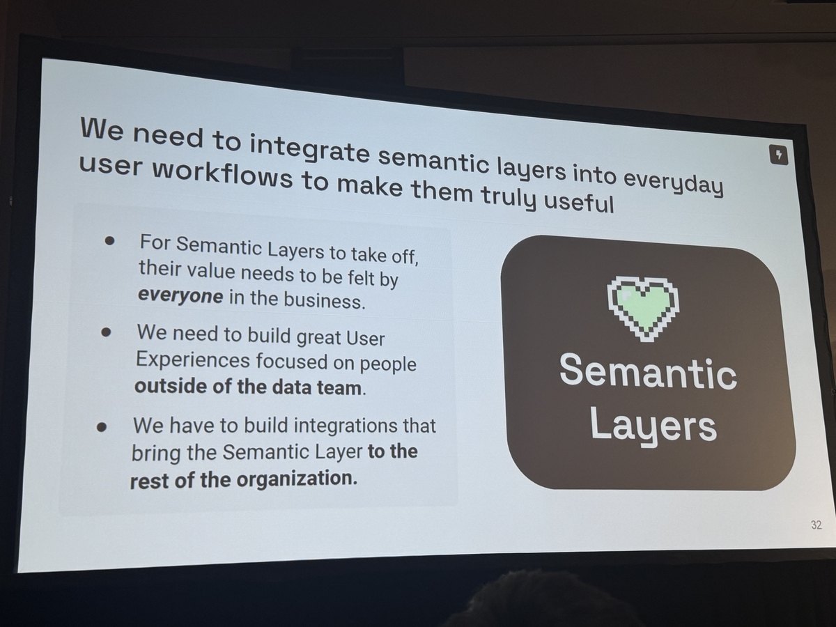 今後セマンティックレイヤーがデータ基盤の中心となるため、あらゆるデータスタックと接続可能な状態を構築する必要があるとのことでした!